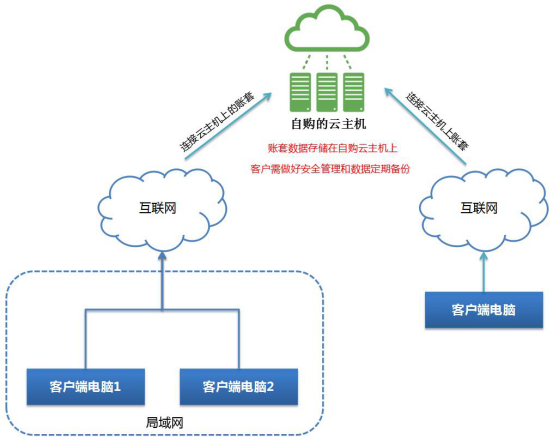 客戶可以自行購買云主機,賬套數據存儲在自購的云主機上。