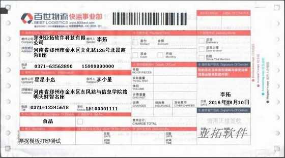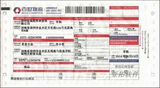 • 百世物流打印模板