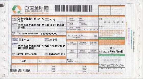• 百世全際通打印模板