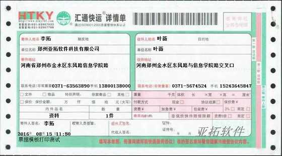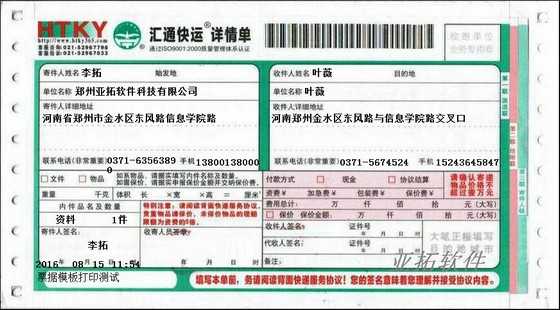 • 匯通快運打印模板