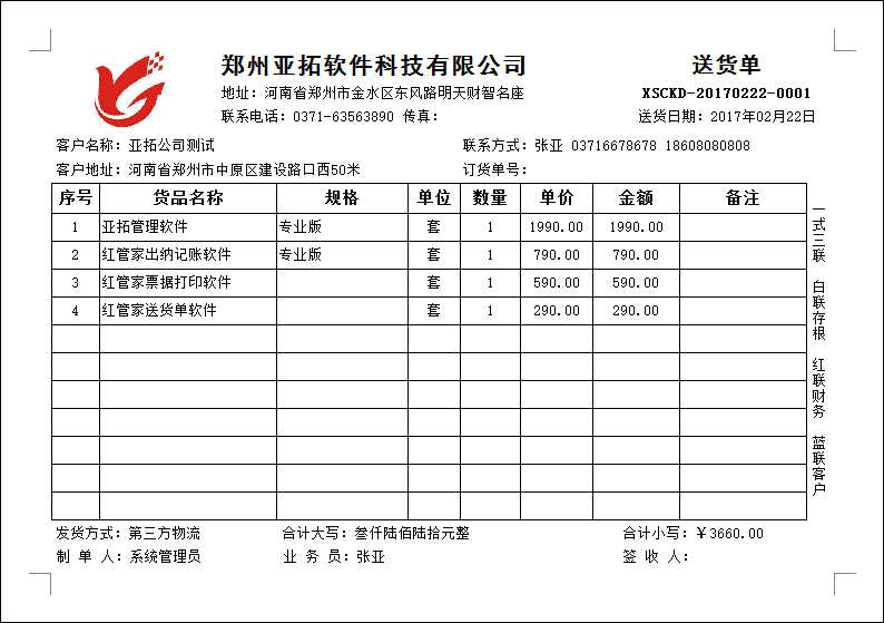 紅管家送貨單打印軟件是一款針對中小型企業開發的集送貨管理(發貨管理)、退貨管理(銷售退貨)、銷售收款(應收款管理)等功能為