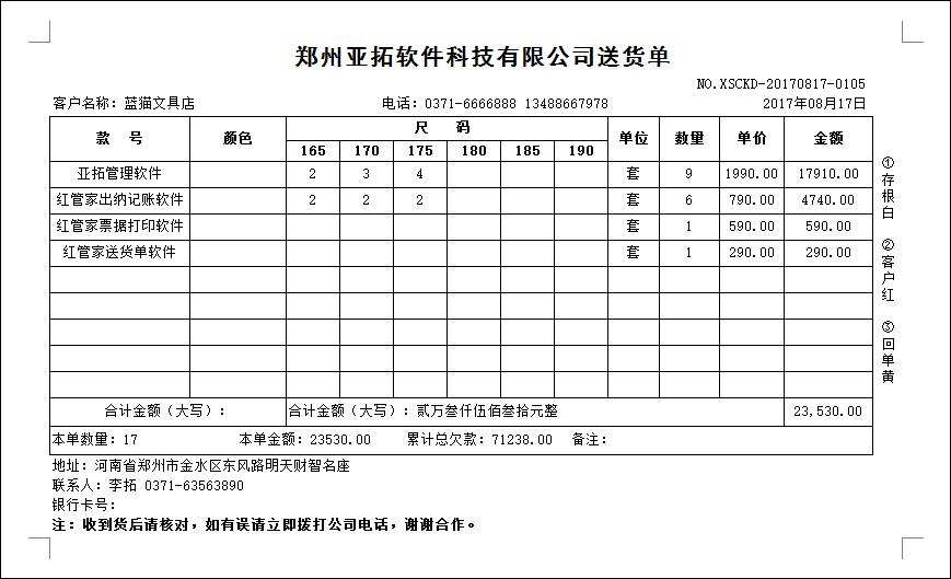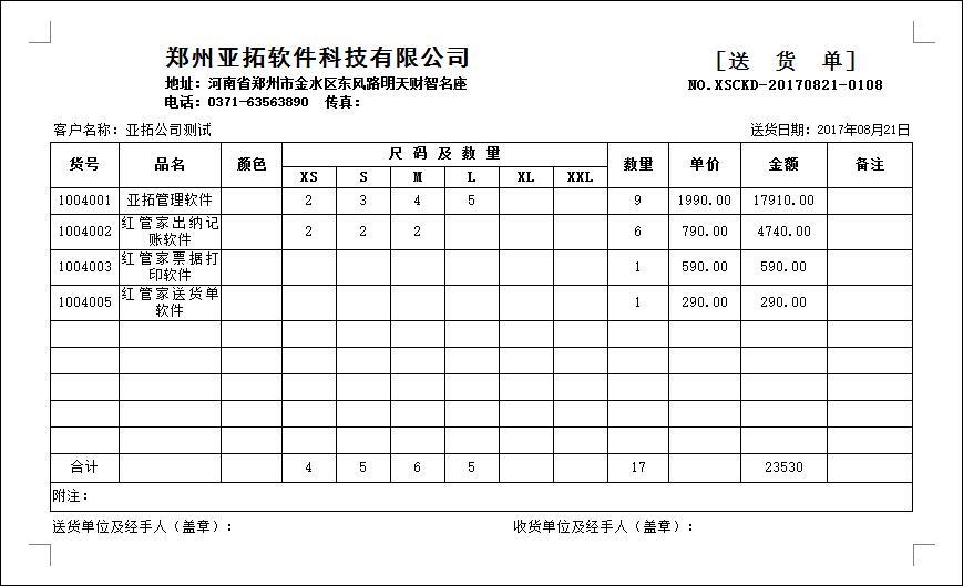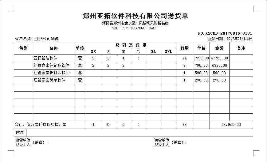 • 送貨單打印模版1001