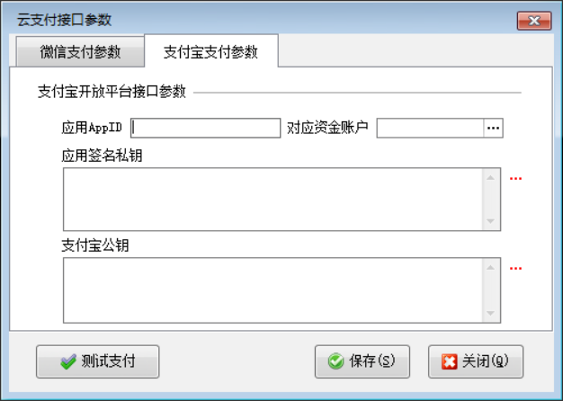 在功能導航窗選擇“擴展應用”—》“云支付參數”,可以設置支付寶和微信支付的參數信息。由于設置比較專業(yè),購買服務后可聯系客服協助配置參數。