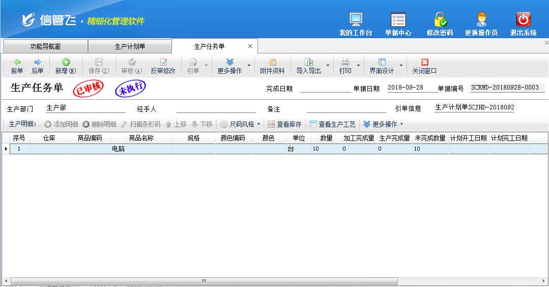 生產任務單,即生產過程中的任務加工單,用于執行生產計劃,進入實際生產階段。