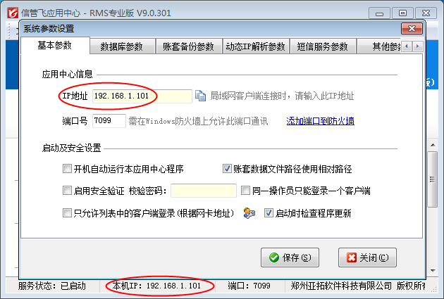 ????(1)應用中心IP地址即主機電腦的IP地址,可以在主機上的應用中心程序上查看(在狀態欄和系統參數設置中都可以看到),如下圖所示: