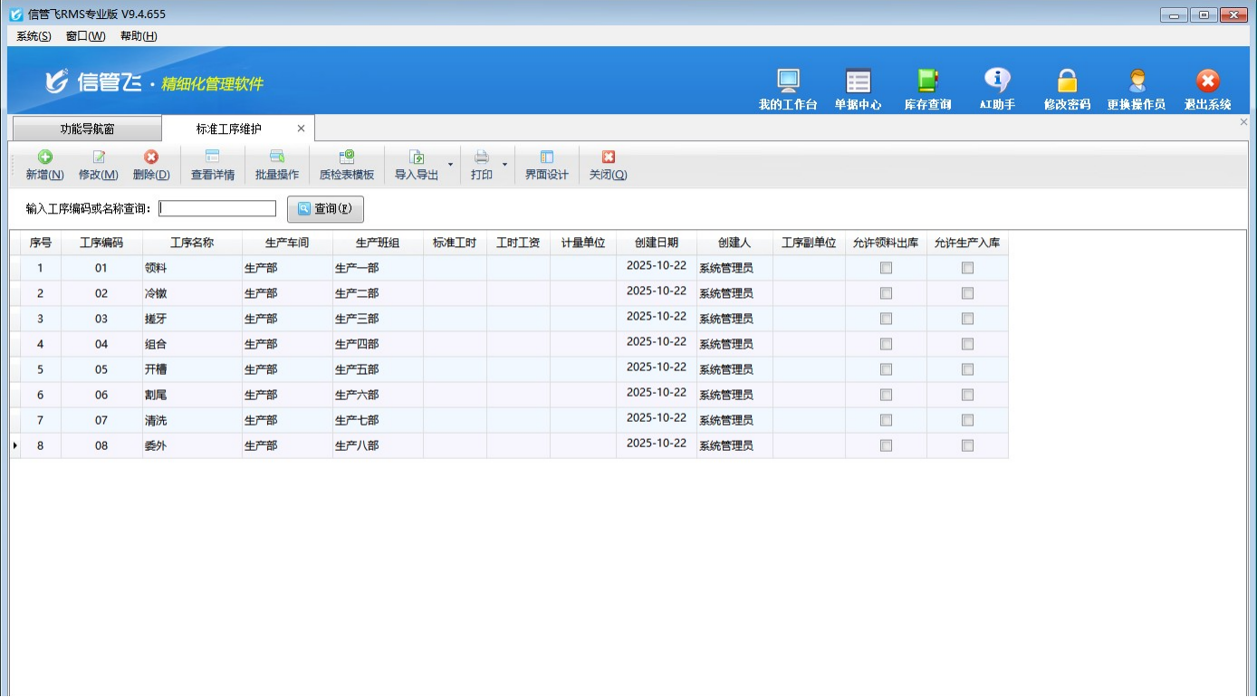 ????標準工序維護為生產工序管理的第一步操作,需要先維護好常用的工序流程。