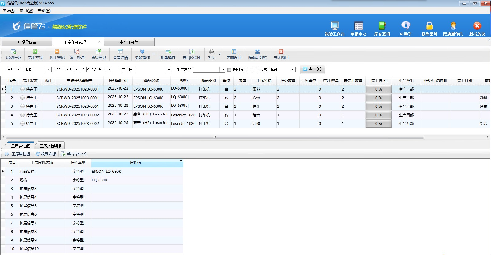 啟動任務:點擊“啟動任務”可以打開啟動工序任務界面,點擊啟動任務,單據狀態更新為正在執行。