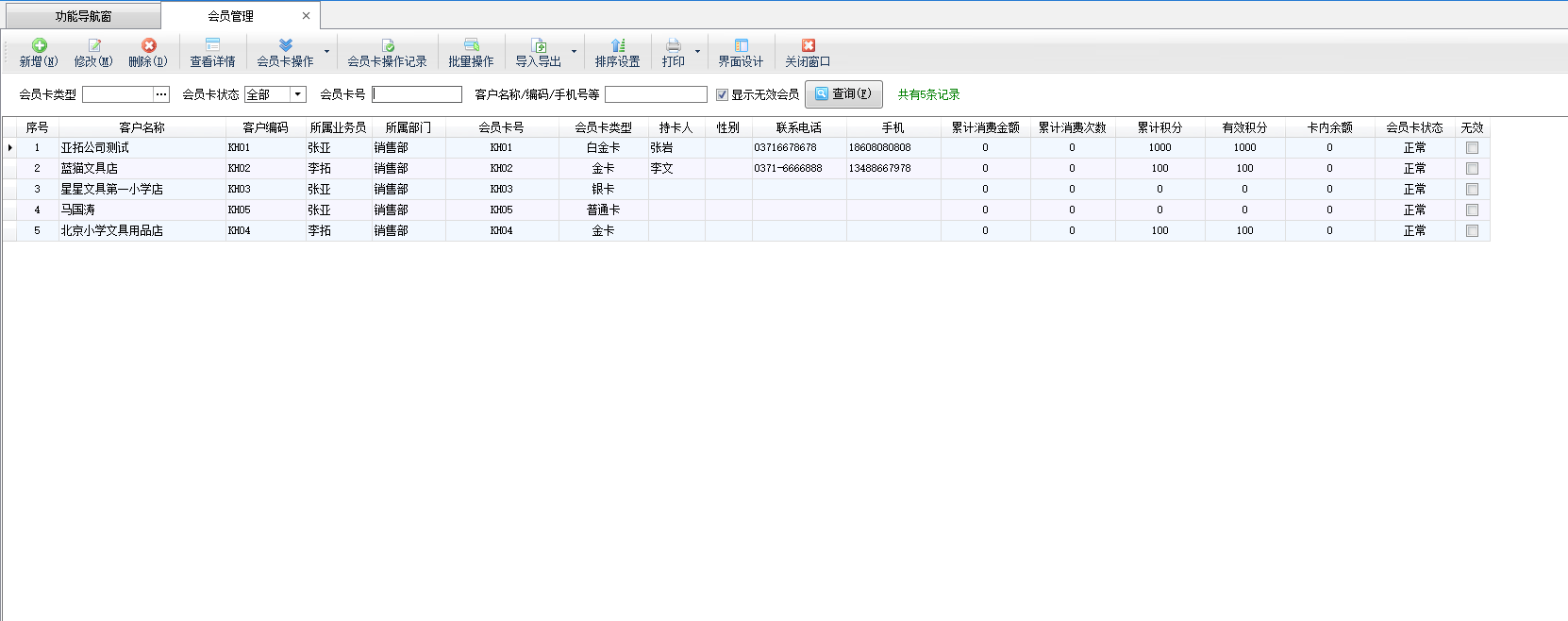 | 12 | 批量設置會員卡類型 | 在批量操作模式下,可以批量設置會員卡類型。 |