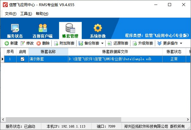 ????賬套即賬套數(shù)據(jù)庫,這是一個從會計(jì)業(yè)務(wù)引申出來的概念,賬套數(shù)據(jù)庫中存儲業(yè)務(wù)數(shù)據(jù)。使用軟件前建議新增加一個賬套,用于重新錄入和管理數(shù)據(jù)。本軟件的賬套是集中在主機(jī)電腦上的應(yīng)用中心程序上進(jìn)行的。