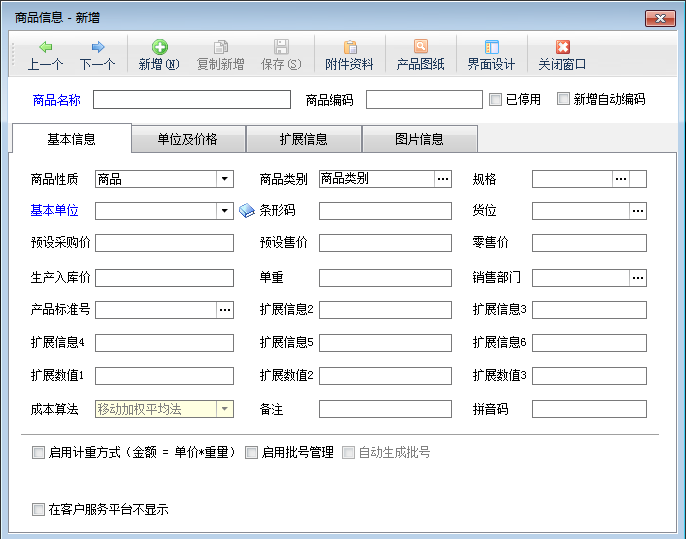 基本單位:默認(rèn)計(jì)量單位,每個商品必須有一個默認(rèn)的計(jì)量單位。商品性質(zhì)為“服務(wù)及費(fèi)用”的商品,其基本單位可設(shè)置為“套”。