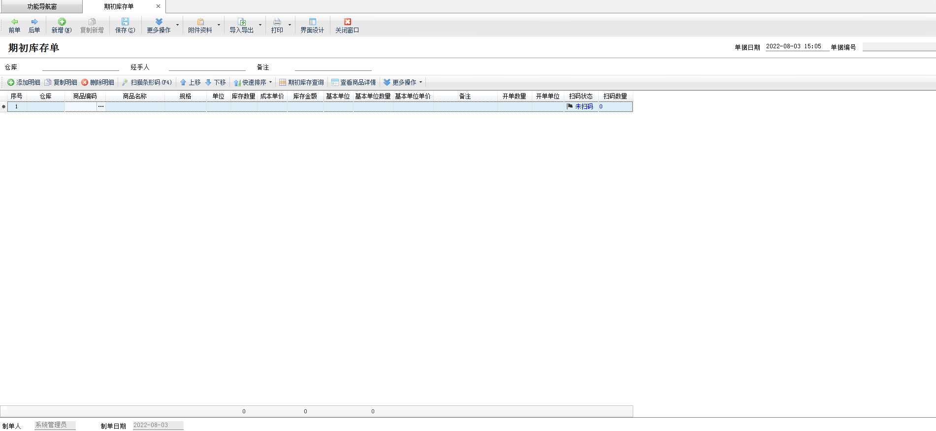 ????③如果有多個倉庫,則每個倉庫開一張期初庫存單。