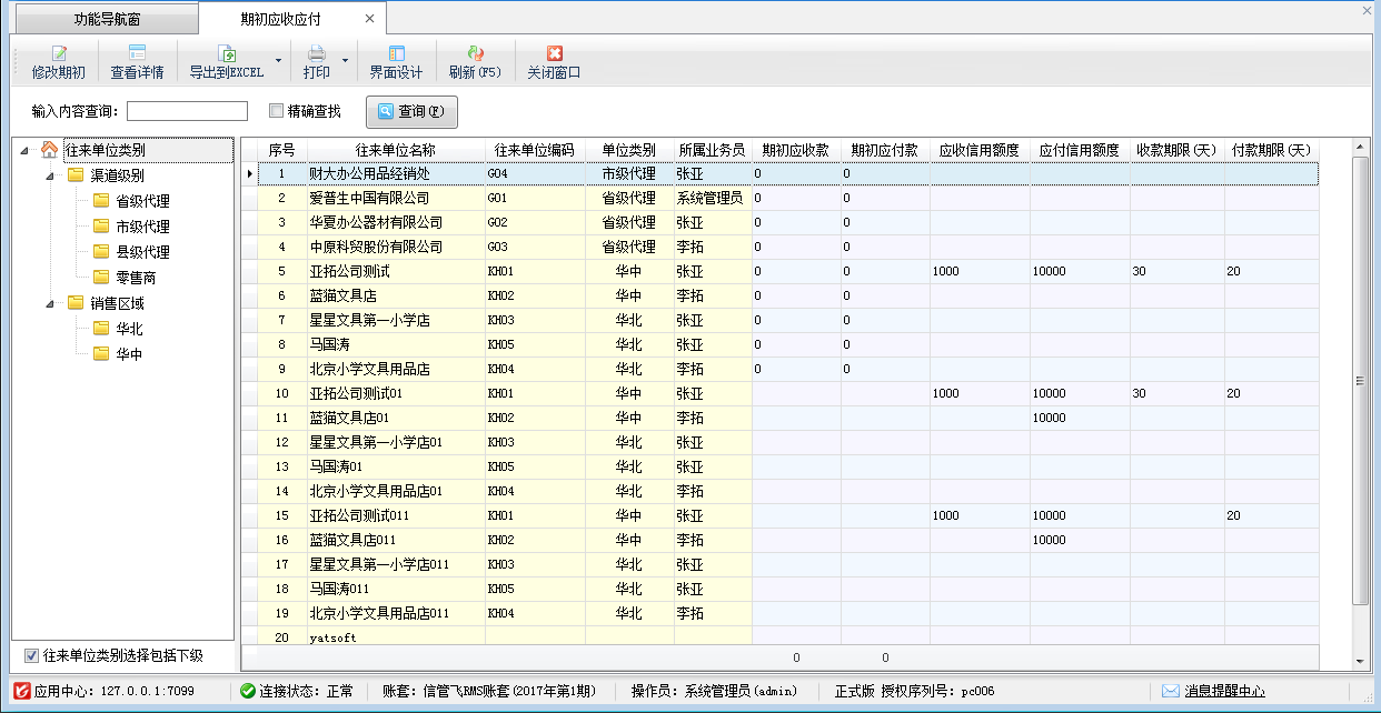????整理出截止到啟用軟件前(即開賬日期)客戶的期初應(yīng)收款(如果客戶有預(yù)付款,輸入負(fù)數(shù))和供應(yīng)商的期初應(yīng)付款(如果有預(yù)付款,輸入負(fù)數(shù))。