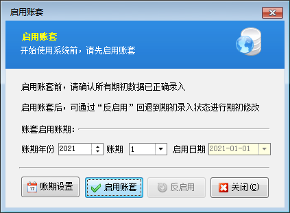 期初開賬:設(shè)定啟用軟件時間(即開賬日期);