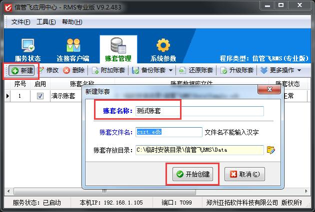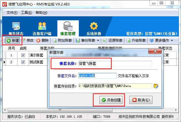 ????賬套即賬套數據庫,這是一個會計業務引申出來的概念,賬套數據庫中存儲業務數據。使用軟件之前建議新增加一個賬套,用于重新錄入和管理數據,信管飛RMS、信管飛倉庫管理軟件、信管飛送貨單軟件、信管飛出納記賬軟件、信管飛票據打印軟件等軟件的賬套都是在主機電腦的應用中心程序上集中管理的,下面我們以信管飛倉庫管理軟件為例詳細介紹下在使用軟件之前如何新增加一個賬套?