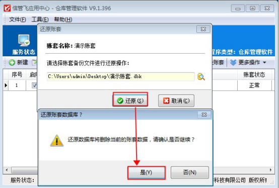 ????一、在信管飛倉庫管理軟件應用中心程序中執行賬套備份。