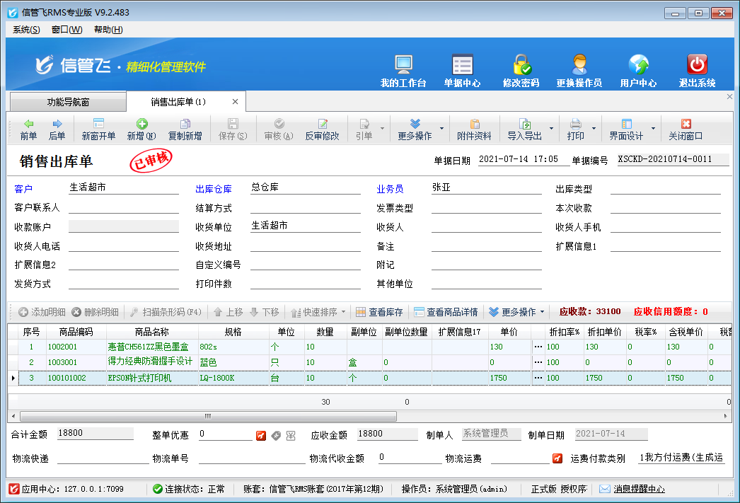 ????1、開銷售出庫單保存并審核,如下圖所示。