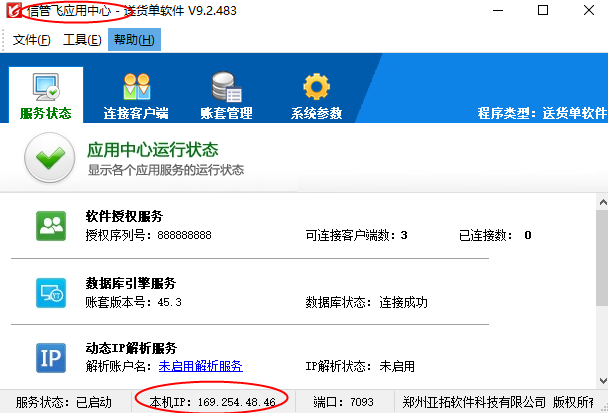 ????亞拓軟件旗下的信管飛送貨單軟件、信管飛RMS軟件、信管飛出納記賬軟件等都支持網絡版本使用。網絡版本指多臺電腦多人同時共享數據使用。默認局域網中連接主機電腦(安裝應用中心的電腦)IP地址來共享主機的賬套數據。