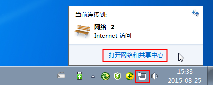 ????①首先在電腦右下角找到網絡連接的符號,點擊會出現當前網絡連接的提示,如圖所示,點擊“打開網絡和共享中心”會出現如圖所示的界面,點擊“本地連接”。