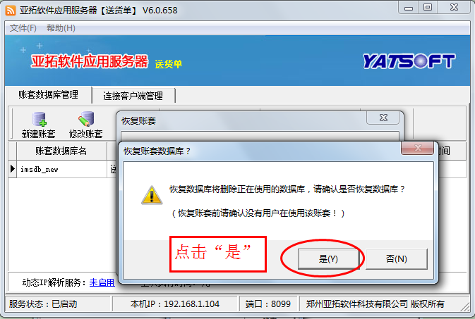 ????在新主機電腦上安裝軟件,打開亞拓軟件應用服務器,然后點擊“新建賬套”,執行新建賬套操作,賬套名為此前備份的賬套名,新建賬套完成后,選擇此新建的賬套,點“恢復賬套”,選擇此前拷貝過來的備份賬套文件進行恢復數據,數據恢復后,在登錄窗口選擇賬套登錄,檢查下數據是否完全恢復。