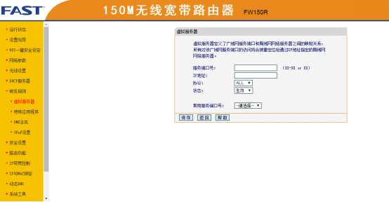 ????①如果主機電腦是通過路由器上網,就需要在路由器上配置端口映射。(這一步驟需要對路由器進行配置,圖1和圖2為迅捷FAST 150M路由器的設置方法。每種路由器的配置稍有不同,可在購買動態IP解析服務后,聯系我們客服幫助進行遠程配置)