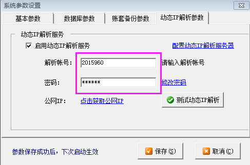 ????②主機電腦配置動態IP解析服務參數,并定時將公網IP地址信息發送給亞拓軟件云服務器。