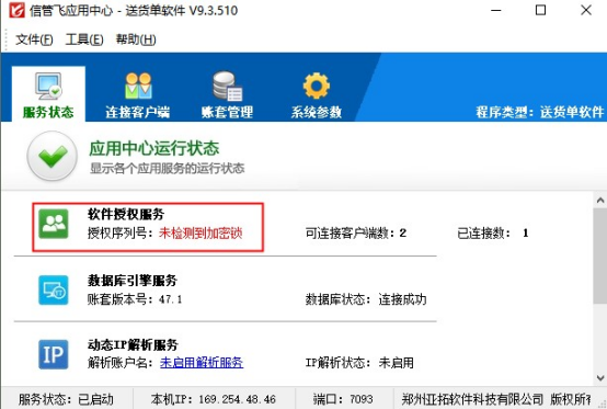 ????加密鎖設備如果長時間使用可能有損壞情況,目前我們支持加密鎖授權更換為授權形式授權,授權目前免費更換。本文以“信管飛送貨單軟件”為例,示范下如何變更授權形式?