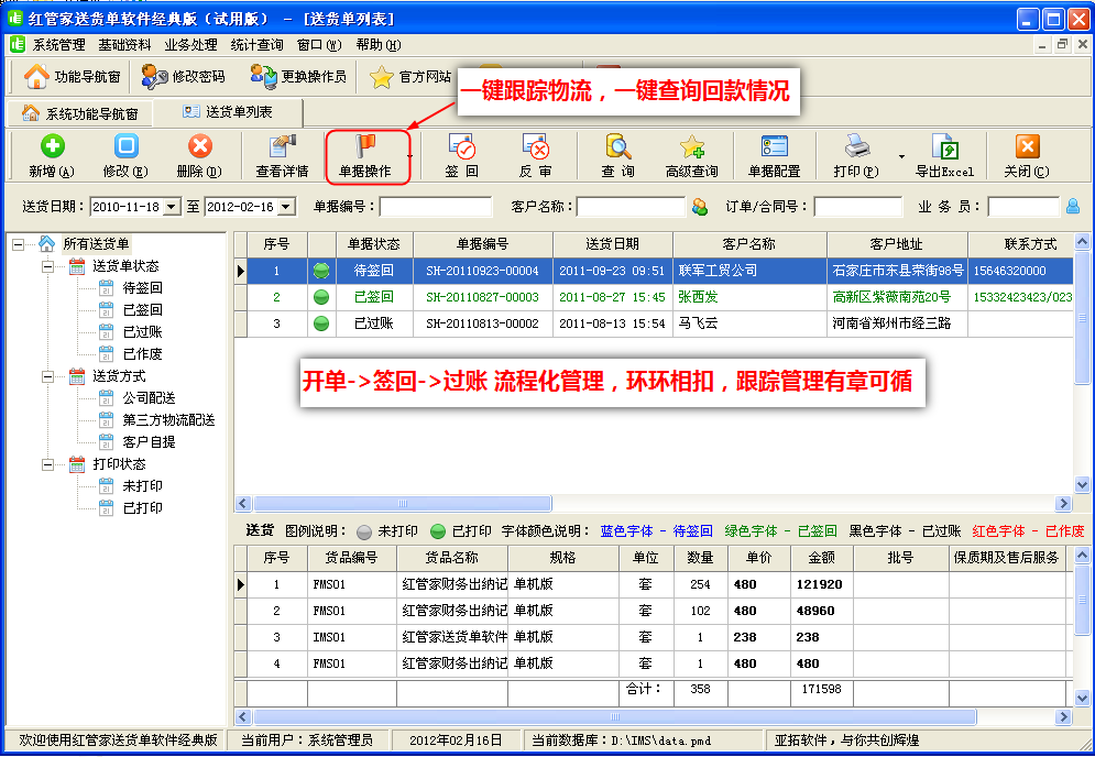 紅管家送貨單軟件經典版下載地址: 下載送貨單打印軟件