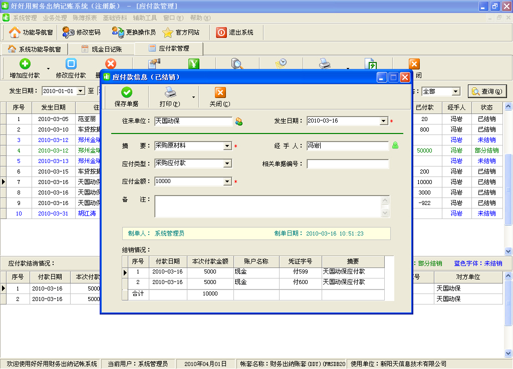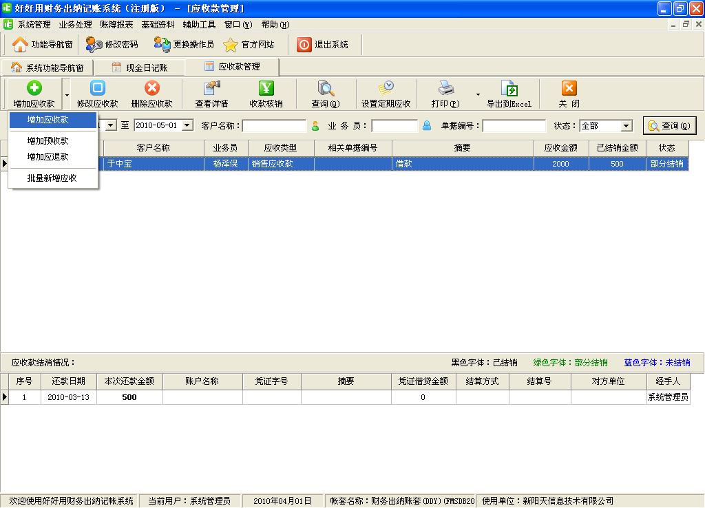 2、獨(dú)有應(yīng)收應(yīng)付款雙向核銷機(jī)制,通過建立定期應(yīng)收應(yīng)付,讓你未雨綢繆,及早掌控財(cái)務(wù)方向