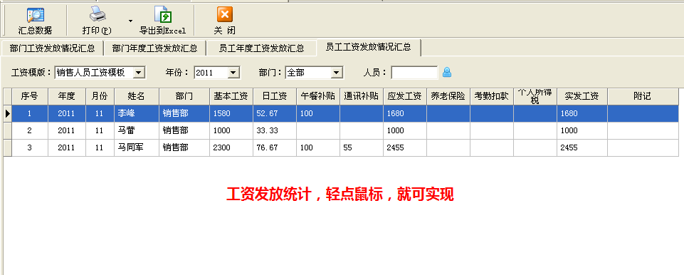 亞拓軟件的紅管家出納記賬系統在2010年率先在同類出納軟件中推出工資管理功能,該功能包括工資發放模板管理、工資發放管理、工資發放統計、工資單打印等功能,并實現了工資發放與記賬的雙向關聯,特別適合中小企業管理工資。系統主要有以下特點:   1、工資項目可以靈活定義,系統預置20項工資項目。   2、工資項目支持定義公式,可計算工資項,