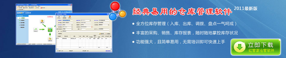 紅管家倉庫管理系統是亞拓軟件開發的專門針對工廠中的材料采購入庫、生產發料領料,批發零售公司的商品采購入庫、出庫記帳等業務,而開發的倉庫及貨物管理軟件,系統主要包括采購訂單、采購入庫單、采購退貨單、銷售訂單、銷售出庫單、銷售退貨單、生產領料單、生產退料單、成品入庫單、倉庫調撥單、盤點報盈單、盤點報損單等業務單據管理,提供了豐富的采購、銷售、庫存報表,更多功能,請下載體驗!&