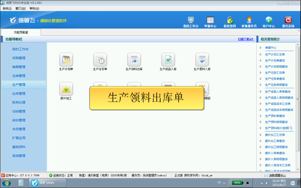 介紹信管飛RMS生產領料出庫單的主要功能和操作步驟。