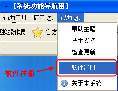 如果您購買的是注冊碼版,需要填寫入注冊信息,方法是在主窗口的菜單“幫助”——》“軟件注冊”,即可打開注冊軟件窗口。(如果您的試用期已經結束,則登錄系統的時候就會彈出這個注冊軟件窗口)