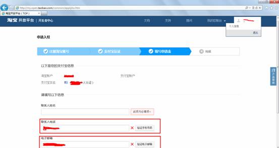 輸入聯系人姓名、聯系人手機、電子郵件,并進行驗證,驗證后,點“提交”按鈕。