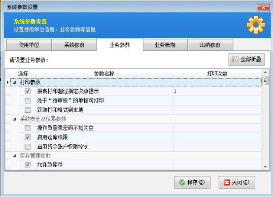 在功能導航窗點“系統管理”—》“業務參數設置”即可進入“業務參數設置”界面,如下圖1所示: