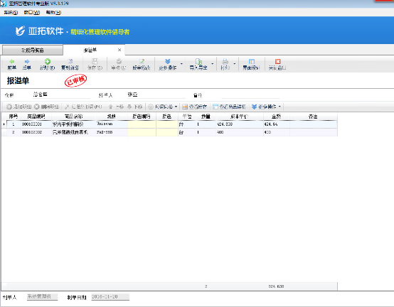 亞拓管理軟件專業版標準版星光版)、紅管家倉庫管理軟件專業版標準版)都支持使用報溢單、報損單進行數量調整,下面我們以亞拓管理軟件專業版為例來演示一下具體的操作步驟。