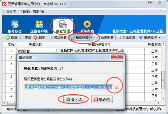 二、在亞拓管理軟件客戶端中如何對賬套進行備份?