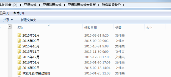 ②賬套備份文件會按照年月分目錄存儲,由于備份為完整備份,因此早前的備份可以直接刪除。我們建議保留本月和每年一月的賬套備份文件。
