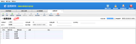 另外單據保存審核之后系統會自動產生一個一般費用單進行管理不計入應付款的其他費用,下圖為此單據自動產生的一般費用單界面。