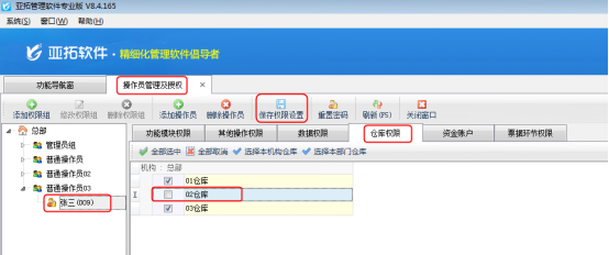 亞拓管理軟件紅管家倉庫管理軟件都可以設置操作員的倉庫控制權限,下面我們以亞拓管理軟件專業版為例介紹一下如何設置操作員的倉庫控制權限。