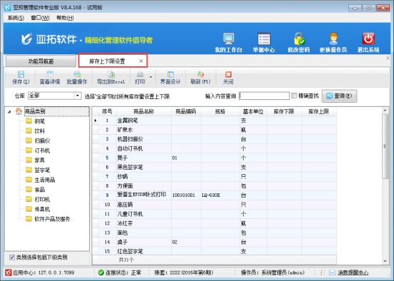 歡迎下載試用可以設(shè)置庫存上下限的進(jìn)銷存軟件:亞拓管理軟件