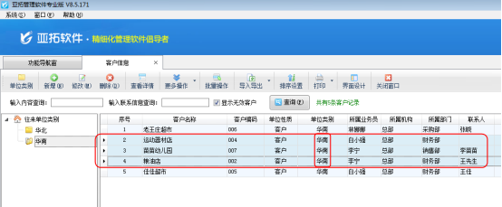 然后到“華北”類別下查看客戶信息,剛才的3個客戶單位類別都已經改變了,其界面如圖3所示。