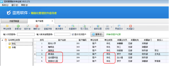 亞拓管理軟件、紅管家倉庫管理軟件、紅管家出納記賬軟件都包括對客戶信息和供應商信息的管理,紅管家票據打印軟件和紅管家送貨單軟件也包括對客戶信息的管理。客戶信息集中管理和維護客戶資料,供應商信息實現供應商資料的維護。在軟件中如何快速批量修改客戶或供應商單位類別呢?下面我們以亞拓管理軟件專業版為例詳細介紹下如何批量修改客戶單位類別。另外,批量修改供應商單位類別的方法基本一樣,在此不再贅述。