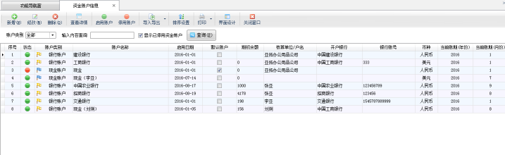 啟用賬戶:選擇一個“已停用”的資金賬戶信息,點擊工具欄中的“啟用賬戶”按鈕可以啟用“已停用”的資金賬戶。