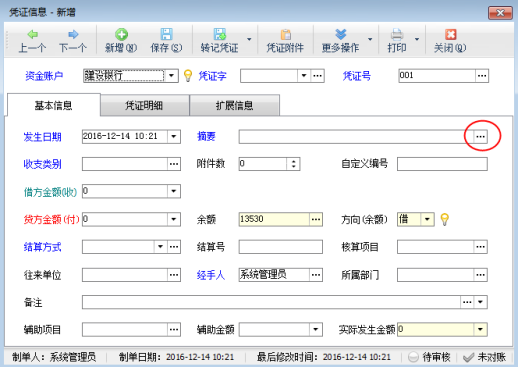 紅管家出納記賬軟件內可以維護日記賬憑證的摘要信息,憑證的摘要是必填項,可從選擇按鈕中選擇或者手工錄入。摘要能夠概要的說明憑單內容,方便以后查找。本篇文章以紅管家出納記賬軟件專業版為例詳細介紹一下如何維護憑證摘要