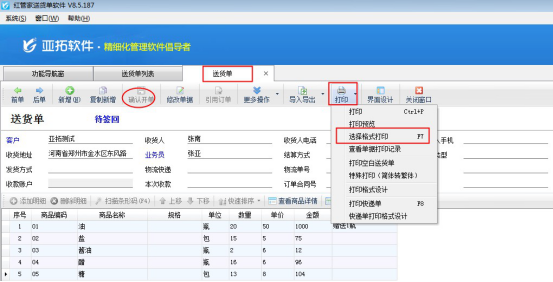 亞拓管理軟件、紅管家送貨單軟件、紅管家倉庫管理軟件等都支持一個單據設置多個打印模板,有時打印一張單據可能會遇到要使用兩種不同的打印模板,軟件只能默認其中一個為默認模板,大部分客戶選擇除默認模板外的打印模板需要重新進去打印格式設計界面進行選擇。軟件可以在打印時直接選擇格式進行打印。