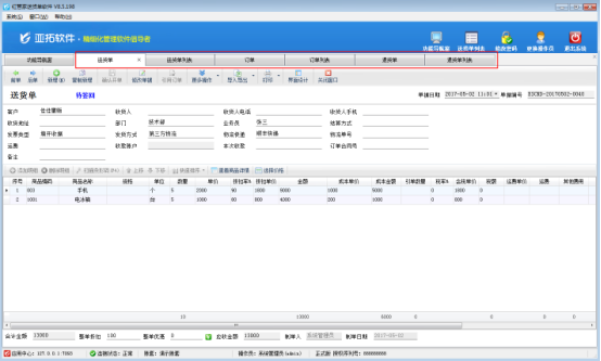 我們以送貨單軟件為例,示范下送貨單軟件如何關(guān)閉所有窗口。例如,現(xiàn)在我們已經(jīng)打開了送貨單、送貨單列表、訂單、訂單列表、退貨單、退貨單列表等窗口,如圖1所示。