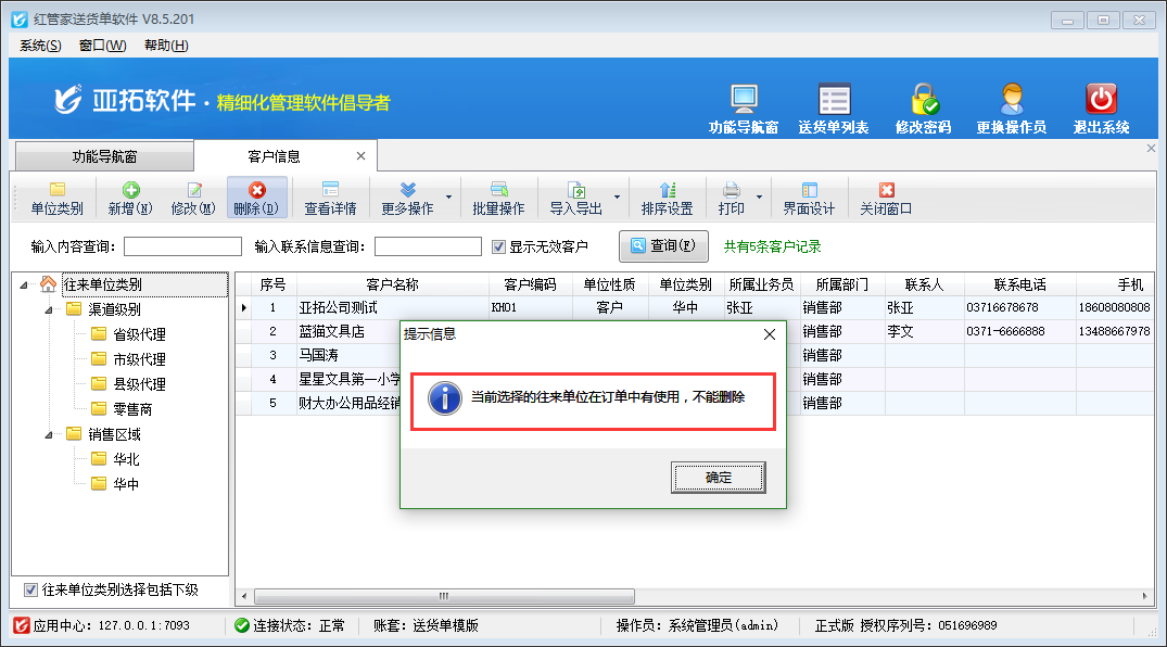 系統(tǒng)默認(rèn)在單據(jù)中已使用過的往來單位信息是不能刪除的,因?yàn)槿绻麆h除,則會影響之前已使用此往來單位信息所開的業(yè)務(wù)單據(jù),對于此種情況,我們可以將需要刪除的往來單位設(shè)置為無效,本篇文章我們來介紹送貨單軟件內(nèi)如何將客戶信息設(shè)置為無效?