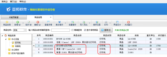 亞拓管理軟件、紅管家倉庫管理軟件和紅管家送貨單軟件都包括對商品信息的管理。商品信息集中管理和維護商品資料,可以對商品信息分類管理。在軟件中如何快速批量修改商品類別呢?下面我們以亞拓管理軟件專業版為例詳細介紹下如何批量修改商品類別。