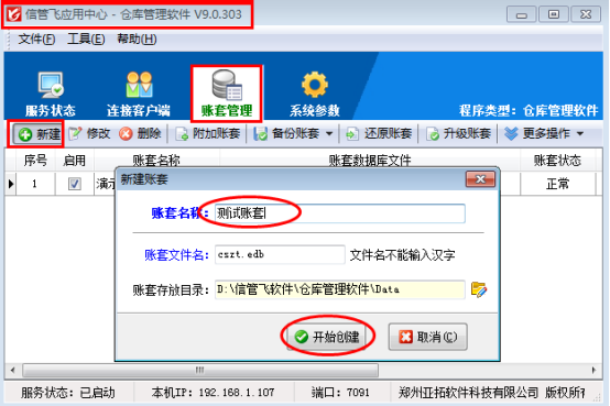 賬套即賬套數(shù)據(jù)庫(kù),這是一個(gè)從會(huì)計(jì)業(yè)務(wù)引申出來(lái)的概念,賬套數(shù)據(jù)庫(kù)中存儲(chǔ)業(yè)務(wù)數(shù)據(jù)。使用軟件前建議新增加一個(gè)賬套,用于重新錄入和管理數(shù)據(jù)。本軟件的賬套是集中在主機(jī)電腦上的應(yīng)用中心程序(紅色圖標(biāo))上進(jìn)行的。我們公司的信管飛RMS(進(jìn)銷存管理軟件)、信管飛送貨單軟件、信管飛出納記賬軟件、信管飛倉(cāng)庫(kù)管理軟件等都支持新建多賬套使用,可以同時(shí)管理多個(gè)賬套。