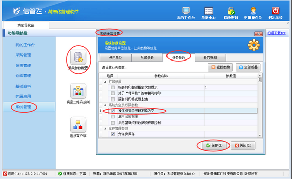 信管飛RMS、信管飛送貨單軟件、信管飛倉庫管理軟件、信管飛出納記賬軟件等軟件內(nèi)都可以設置多個操作員,并可以設置操作員登陸密碼不能為空。本篇文章我們以信管飛倉庫管理軟件為例詳細介紹一下如何設置操作員登陸密碼不能為空?